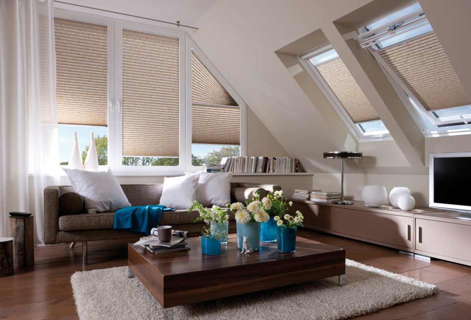 Einfaches Handling, hoher Bedienkomfort und ausgezeichnete Funktionalität stehen auf der praktischen, die Gestaltungsmöglichkeiten durch die vielfältige Stoffauswahl auf der dekorativen Seite. Plissees werden exakt auf Maß angefertigt und sind äußerst passgenau. Die breite Palette an Sonderformen und Bedienvarianten sorgt dabei nicht nur bei rechtwinkligen Fenstersituationen für den perfekten Sicht- und Sonnenschutz – ob im Wintergarten, Giebel-, Dachfenster- oder Plafondbereich.